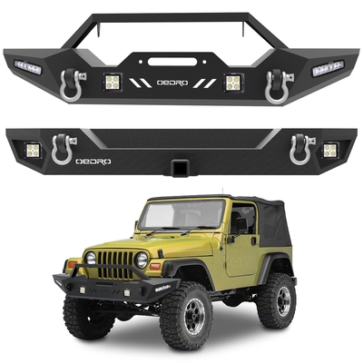 Colour: Black. Type: Front, Rear Bumper. Bumper Cut-outs: Tow Hook Cut-out. Package Included: Front Bumperx 1. Rear Bumperx 1. LED Lightsx 6. Set of Screwsx 2. Installation Manualx 2. Warranty: Warranty: 2-Year.