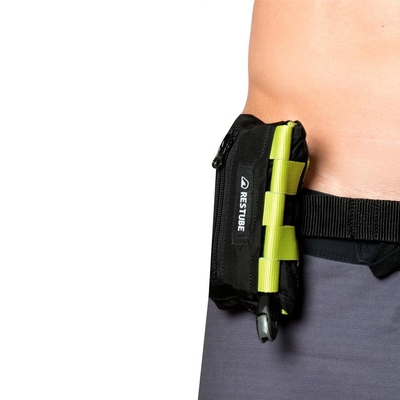 The robust pocket with its splint closing system & the exchangeable belt system can be mounted directly to the harness or at the belt. It is for rough use & perfect for kite, wind & wave surfing, or SUP. The RESTUBE sports also can be used for any other water-related activities. More often professionals are using it for additional personal self-protection out there in the field.. Inflatable swim buoy for surfing, kite surfing, windsurfing, stand up paddle (SUP) & kayaking. The RESTUBE is NOT a Coast Guard approved life vest as it does not go over your head or wrap around you. It will not help you if you are passed out. It acts as a flotation swim buoy to rest on & easy to swim with.