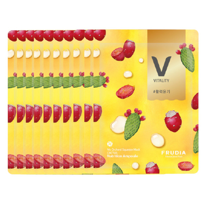 100% pure cotton airy sheet Its excellent adhesion & air permeability lightly deliver active ingredients to the skin just like breathing. Each drop of nutrition carefully & slowly squeezed from the fruit at low temperature into the skin! This mask has 2 types of ampoule.1) Creamy ampoule Nutrition of freshly squeezed juice A soft creamy ampoule formulation that is absorbed with moisture & elasticity. It contains moisturizing ingredients that help with the synthesis of filaggrin which gives a strong & dry skin a healthy nourishment. It contains high-purity collagen to give firm & nutritious skin a firm nutrition.2) Aqua ampoule Nutrition of freshly squeezed juice Light non-sticky moist & clear ampoule formulation. Five moisturizing factors found in nature are charged with strong moisture energy to protect the skin moisture barrier & maintain moisture for a long time. Rich nourishment creamy ampoule: Shea Butter for extremely dry skin luster & hydration Cactus for dry skin vitality & luster Raspberry for saggy skin nutrition & elasticity Acai Berry for damaged skin firming & hydration Rich moisture aqua ampoule: Peach for fatigued skin vitality & soothing Mango for rough skin smooth & purification Coconut for dry skin intensive moisture Cherry for dark skin moisture & vitality