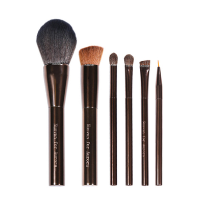 - Wooden handle- Small in size for travelling Finishing powder brush x 1 Contour brush x 1 Large eye shadow brush x 1 Blending brush x 1 Brow brush x 1 ...