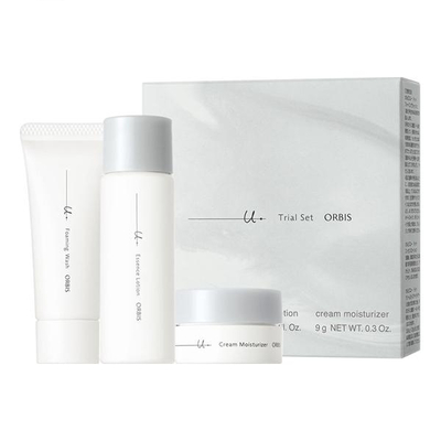 [ Set contents]・ Orbis U Foaming Wash 14g・ Orbis U Essence Lotion 20m L・ Orbis U Gel Moisturizer 9g Focusing on the basic strength of the skin (*1). One-week trial set of the early aging careseries Orbis U is an early aging care (*2) series that focuses on basic strength of the skin. Ithas been revealed that early aging skin which is prone to feeling unwell also has a decline in the various moisturizing functions that the skin naturally possesses the basic strength of the skin. Orbis U focuses on that basic strength of the skin filling the skin with moisture in every corner maintaining the barrier function & creating a skin environment that is not affected by changes & adopting a new ingredient approach. Formulated with MC Activator an ingredient based on original research it draws out & enhances the moisture of the skin resulting in skin full of firmness. In addition it contains a high concentration of DF-Panthenol an active ingredient unique to the Pola Orbis Group that prevents rou... ...