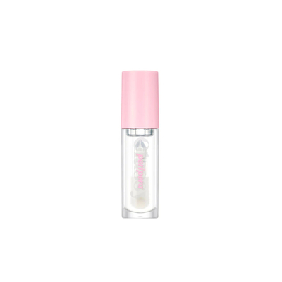 A vegan glassy non-sticky lip gloss helps create a volumized-looking lips.