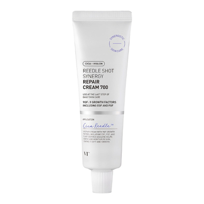 [SKIN BARRIER REPAIR CREAM] Contains high-efficacy EGF ingredients 9 growth factors including EGF & FGF & 9GF plus plant-derived azulene ingredients.[CERAMIDE] Ceramide & other synergistic ingredients similar to that of skin to create skin barrier & protect damaged skin.[STEPS] Synergy Repair Cream made especially to be used after Reedle Shots. Comes in unit 50 100 300 & 700 (Ingredients ratio) like that of Reedle Shots with increase of level. For starters 50 is recommended.[RECOMMENDED] For sensitive skin & those seeking faster results it is recommended to use a product with a higher number.[CICAHYALON] VT's Cica Hyalon to gently exfoliate impurities of skin surface & cultivate a silky texture. ...